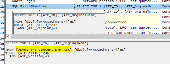 In the below screenshot we can see that the content database is accessed to fetch the attachment file. I’ve used this approach to verify that the copied files will be read from the correct database, before deleting them from the content database.