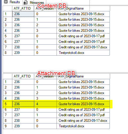 This is the statement for deleting the files to another attachment database and the difference to the original one: